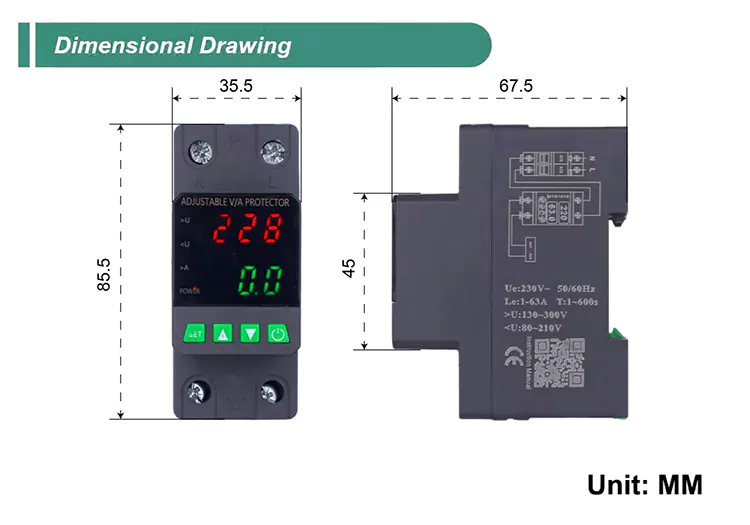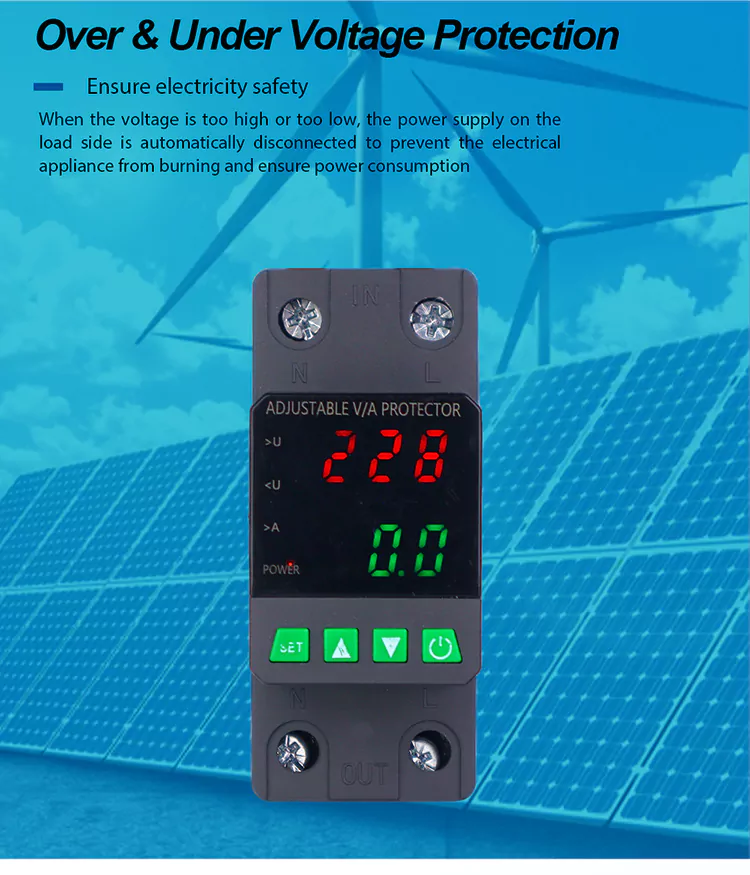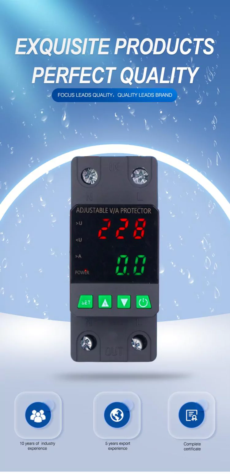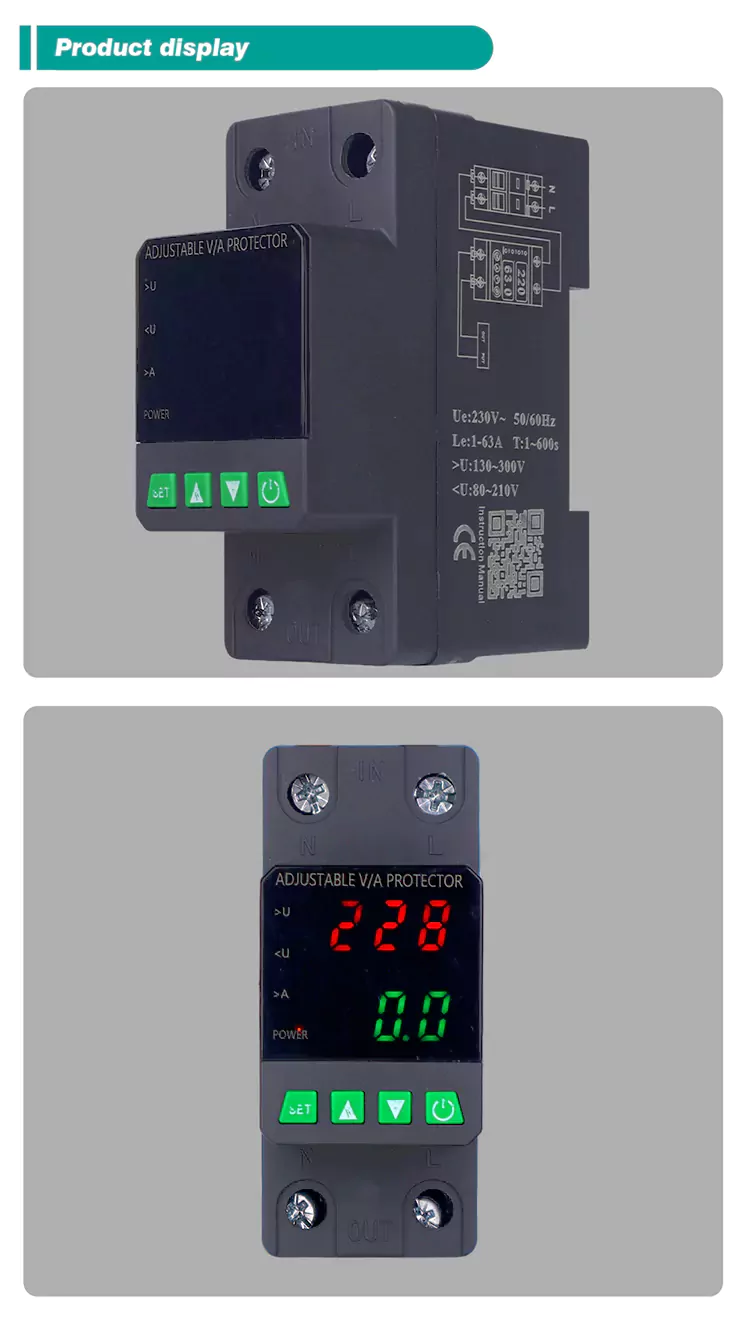 مزود بشاشة رقمية ومصنعة بمكونات إلكترونية معيارية مستوردة ، لها موثوقية وأداء عالي. يقطع الحامي تلقائيًا وسرعة مصدر الطاقة أثناء الفولتية غير الطبيعية (مثل الجهد الزائد أو التقلبات السفلية أو الشبكة) ويعيد إمدادات الطاقة بعد عودة الجهد إلى طبيعتها.