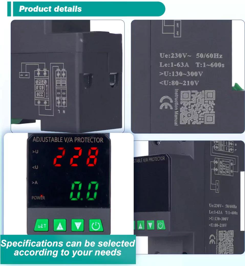 1 ~ 40a قابل للتعديل (افتراضي: 40a) 1 ~ 63a قابل للتعديل (الافتراضي: 63a)