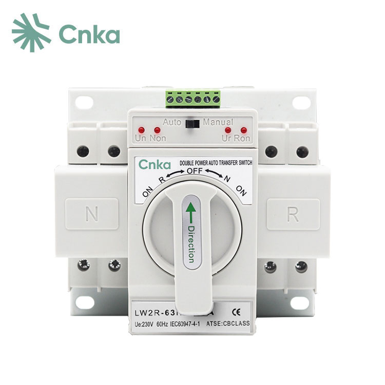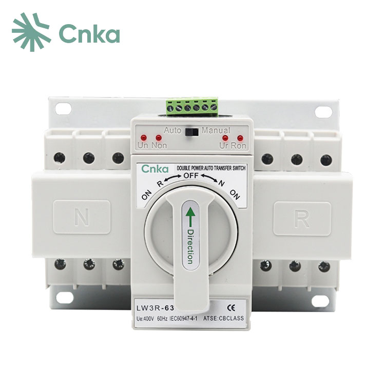 يوفر China Factory CNKA مفتاح نقل مولد تلقائي متين، مثالي لشبكات الطاقة المزدوجة أحادية الطور وسلكين مع تيار متردد 50 هرتز، وجهد مقدر 230 فولت، وتيار مقنن أقل من 63 أمبير. في حالة انقطاع التيار الكهربائي، فإنه يختبر فقط جهد الطور A العادي وجهد الطور A الاحتياطي، ويكشف عن فقدان الجهد أو فقدان الطور. ومن ثم يقوم تلقائيًا بنقل دائرة حمل واحدة أو أكثر من مصدر طاقة إلى آخر، مما يضمن إمداد طاقة ثابتًا لدائرة الحمل. يلتزم مفتاح نقل المولد التلقائي ats بمعايير IEC60947-6-1 وGBT1404811.